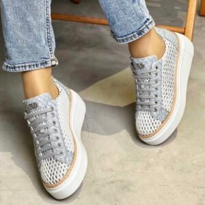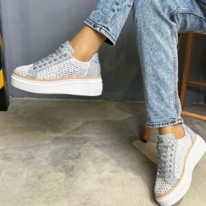 Pilkos spalvos natūralios itališkos Pitono odos kedai su tinkliniais intarpais. Avalynė, kuri atspindi minimaliztinį ir laisvalaikio stilių. Kedai pagaminti iš aukščiausios kokybės itališkų medžiagų.