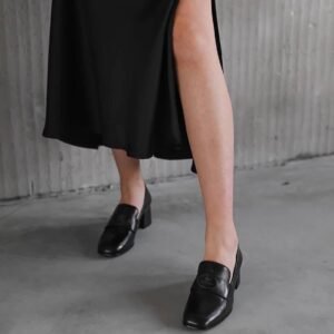 Elegantiški batai pagaminti iš natūralios Buffalo odos su plačiu bei stabiliu vidutinio aukščio kulnu. Batai ant kojos atrodo labai tvarkingai. Viduje yra minkštas odinis vidpadis, kuris suteiks komforto visą dieną.